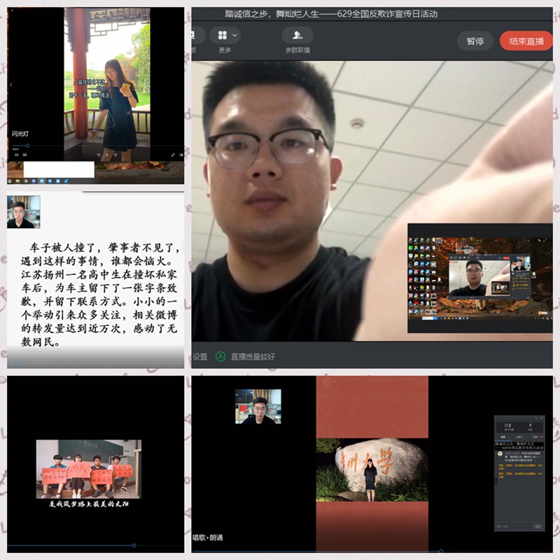 6月28日晚,环境学院、化工学院联合举办“诚以修身,信以养德”诚信教育日主题活动之踏诚信之步,舞灿烂人生——629全国反欺诈宣传日活动。本次活动以钉钉直播互动的形式,别开生面的开展了一次,诚信教育——反欺诈宣传。