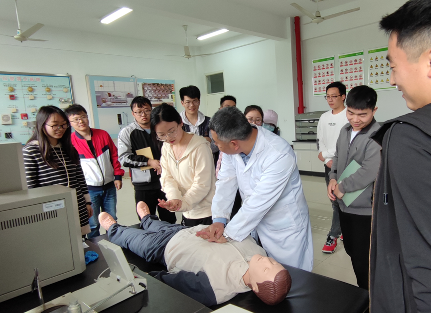 在安全培训会上黄勇重点强调了安全意识的重要性,回顾了国内高校实验室安全事故案例,悉数介绍了实验室水、电、气、火,及化学药品的使用安全细则。同时结合各实验室配备的防爆酒精灯、急救箱、灭火毯、灭火器等设备,重点对发生事故的应对策略及应急处理对策进行讲解。此外,同学们们还学习了现场急救、消防及化学品伤害与应急救援的相关知识,并进行实训。其中,现场急救包括常见急症介绍、CPR实训等。在黄勇的讲解指导下,部分同学利用模拟人设备依次进行CPR训练,对于模拟救援中出现的问题进行及时纠正,同学们也在实训中加深了对于实施心肺复苏的条件、步骤、技术的记忆。