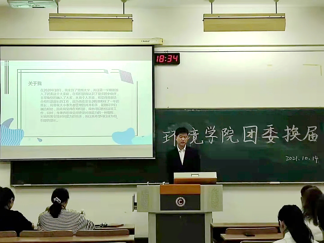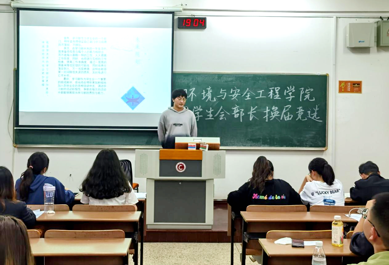 2021年10月14日18:30,为了进一步加强学院组织建设,加强学生的自我管理,环境与安全工程学院、城市建设学院(筹)三大学生组织部部长换届选举大会分别在W1509 W1510 W1518教室中举行。