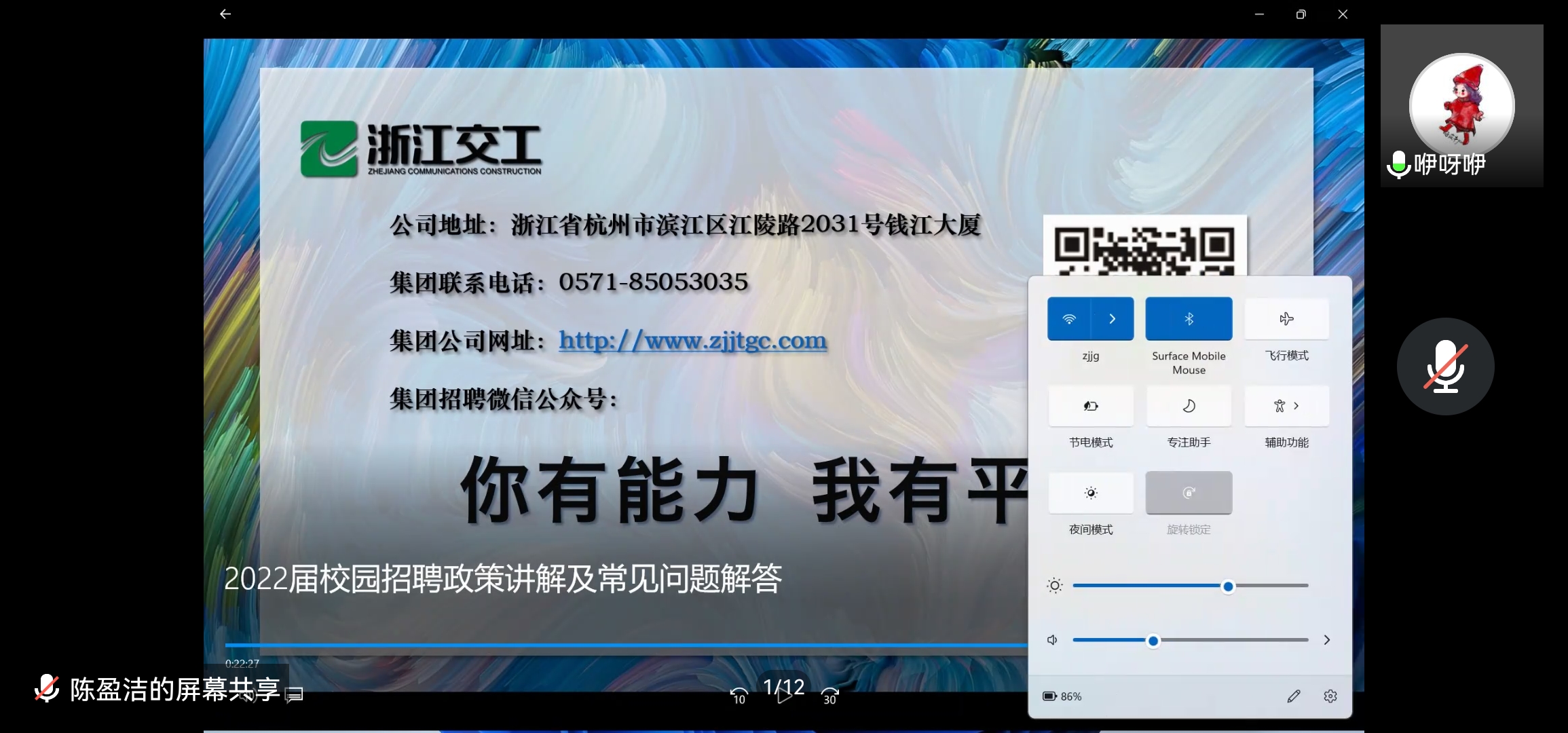 会议中,参与“云招聘”的公司就介绍自身企业文化、新入职人员薪资情况以及企业发展愿景等方面展开招聘,为环境学院18级毕业生提供了涵盖环工、安全、土木、给水、工程等多种工作岗位的选择。此外,用人单位还对学生就业选择和职业发展进行指导,鼓励学生在后疫情时代通过提高个人实力来增强就业自信。同时,会中也变“面对面”为“屏对屏”,学生可以通过平台进行提问,并由企业负责人现场答疑解惑,让学生可以足不出户便了解企业的各方面情况,从而选择与自身相匹配的心仪岗位。