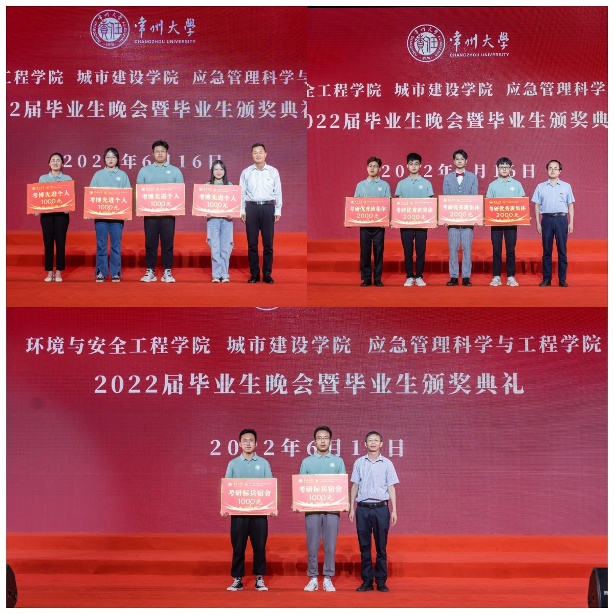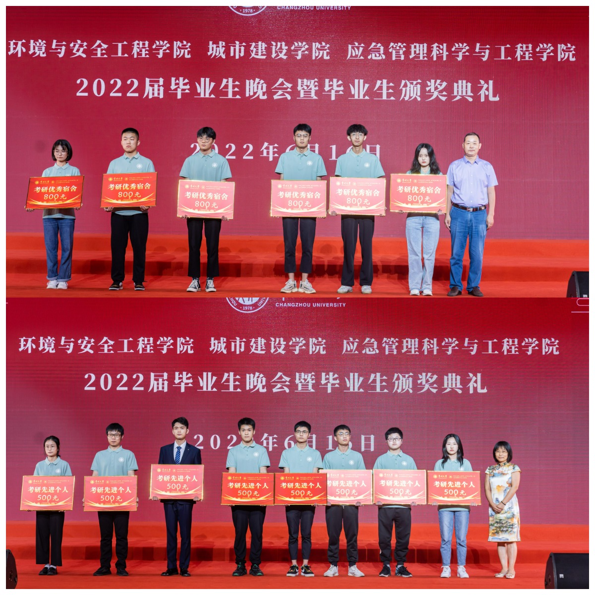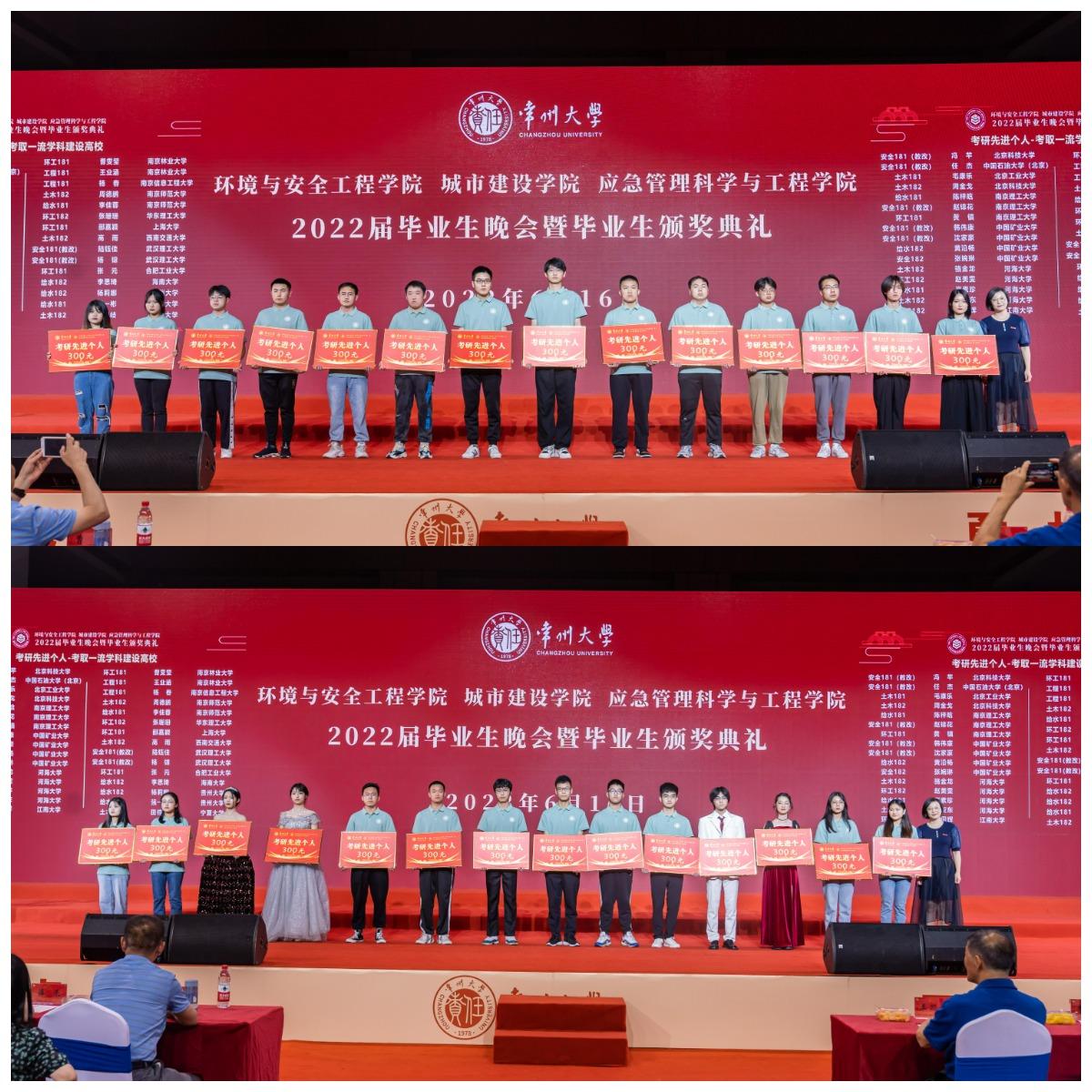 伴随着庄严的国歌声,典礼正式拉开帷幕。院党委书记薛荣首先向全体师生宣读了受表彰学生名单,在向他们表示热烈的祝贺的同时也向全体学生提出了期许。典礼中播放了6位考博录取学子和99位考研上岸学子的风采视频,随后在热烈的掌声与欢呼中,受邀嘉宾依次上台为江苏省土木专业优秀毕业生、优秀毕业研究生、优秀毕业生标兵、考博先进个人、考研优秀班级、考研标兵宿舍、考研优秀宿舍、考研先进个人、各专业录取研究生颁奖。