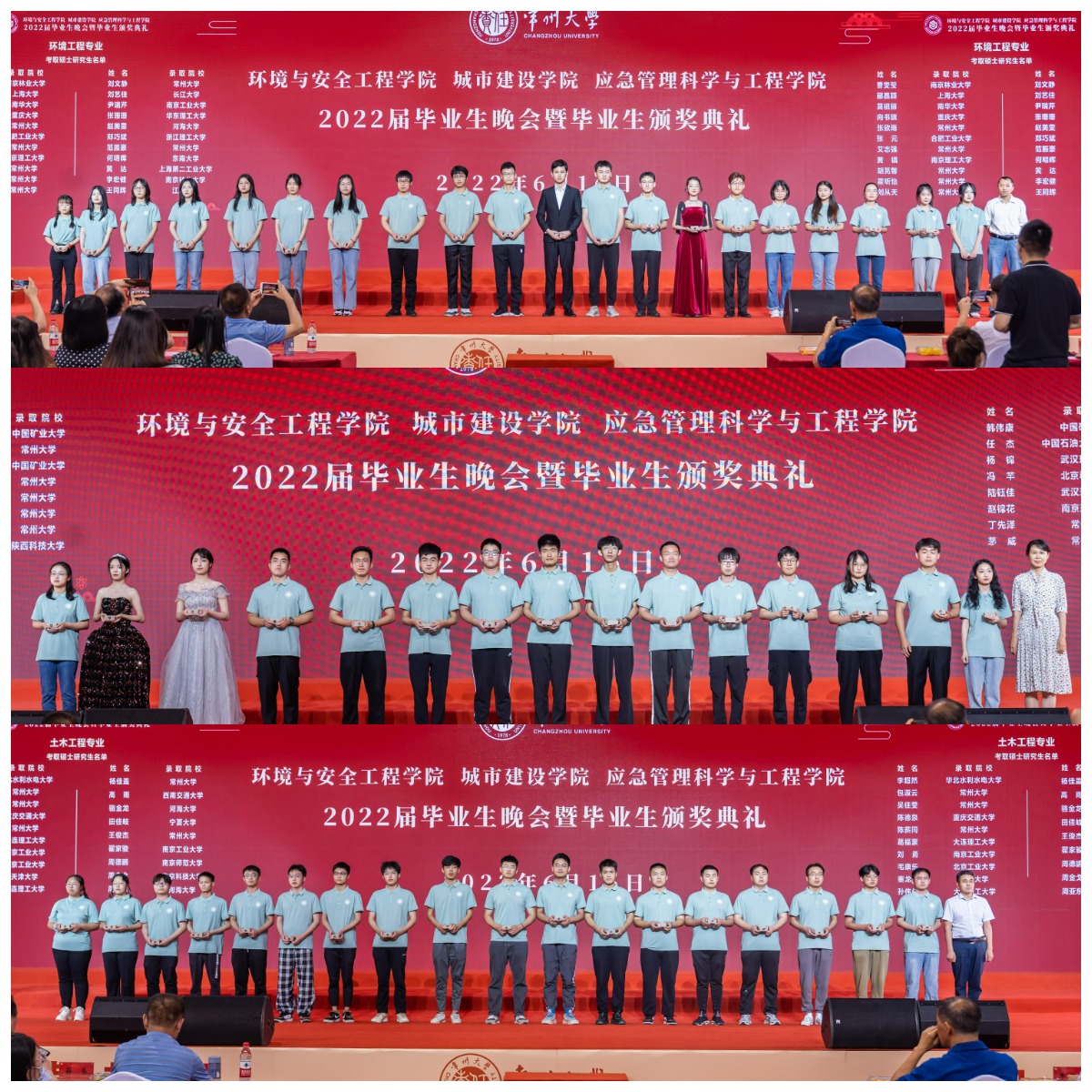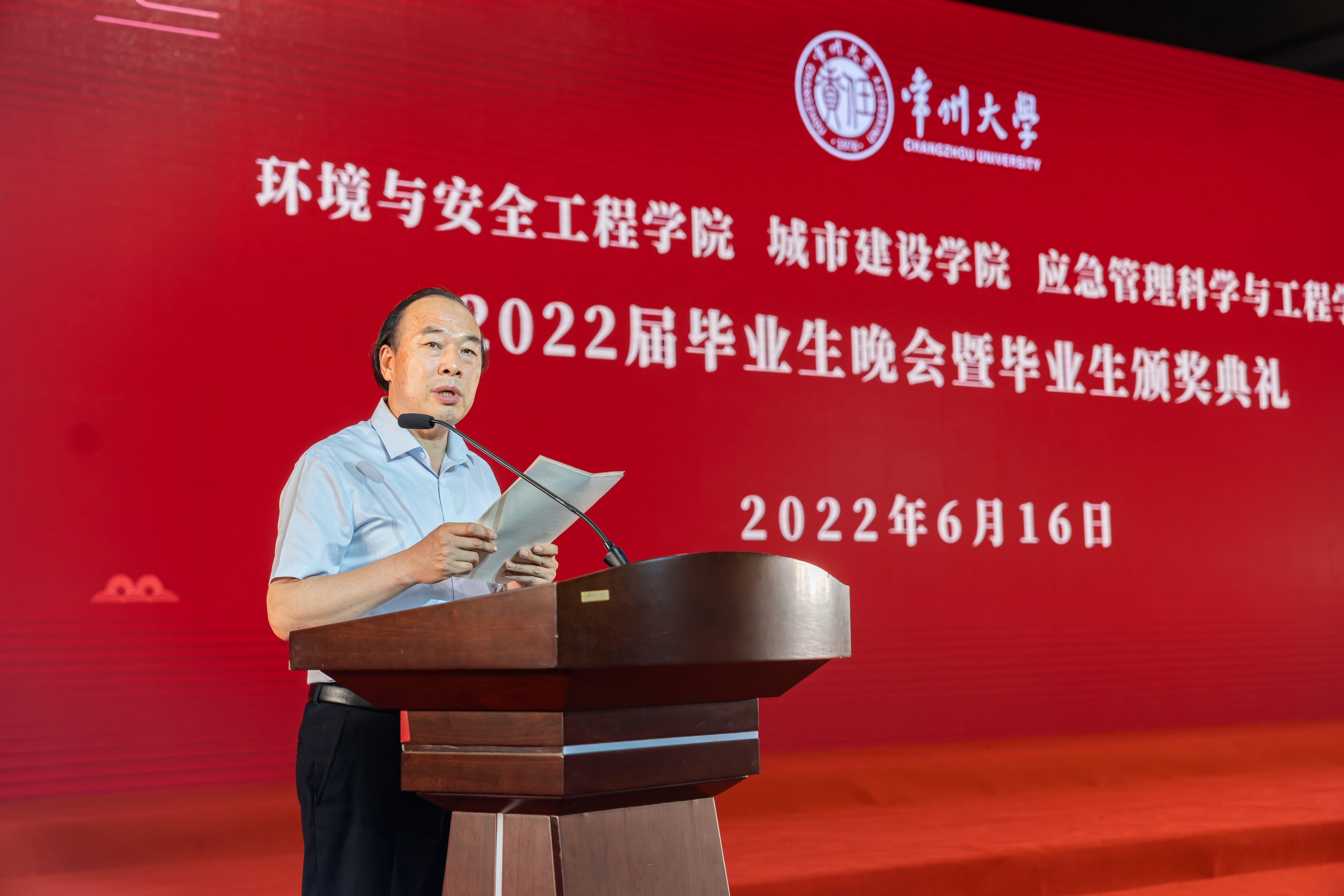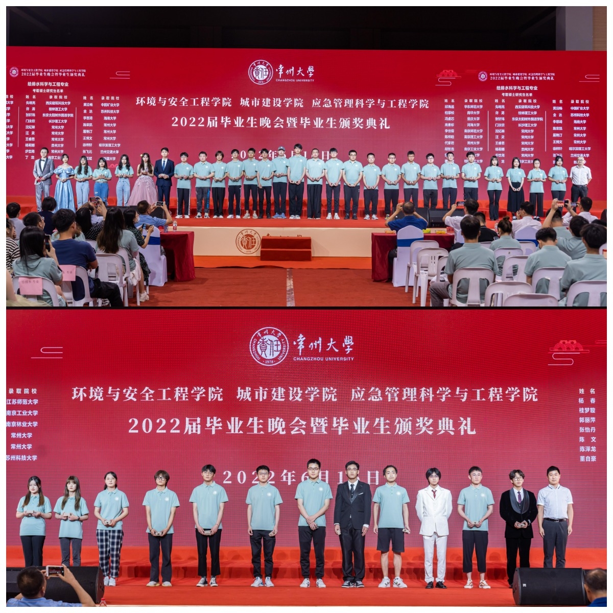 夏树苍翠,燕语莺啼,又是一载毕业时,四年前满怀憧憬踏入威尼斯欢乐娱人城1099求学的莘莘学子如今已收获满囊,即将奔赴下一场山海。值此丰收之际,为给学院每一位毕业学子的大学之旅划上完美句号,鼓舞他们树立继续扬帆远航、劈波斩浪的勇气和信心,2022年6月16日下午15:30,威尼斯欢乐娱人城1099环境与安全工程学院2022届毕业生晚会暨毕业生颁奖典礼于威尼斯欢乐娱人城1099科教城校区东区体育馆(主馆)隆重举办。受邀出席本次典礼的有校关工委常务副主任王凯全,校关工委副主任、学院关工委常务副主任曹荣,人事处处长李忠玉,学院领导、各专业负责人、专业老师、辅导员及2022届全体在校毕业生。