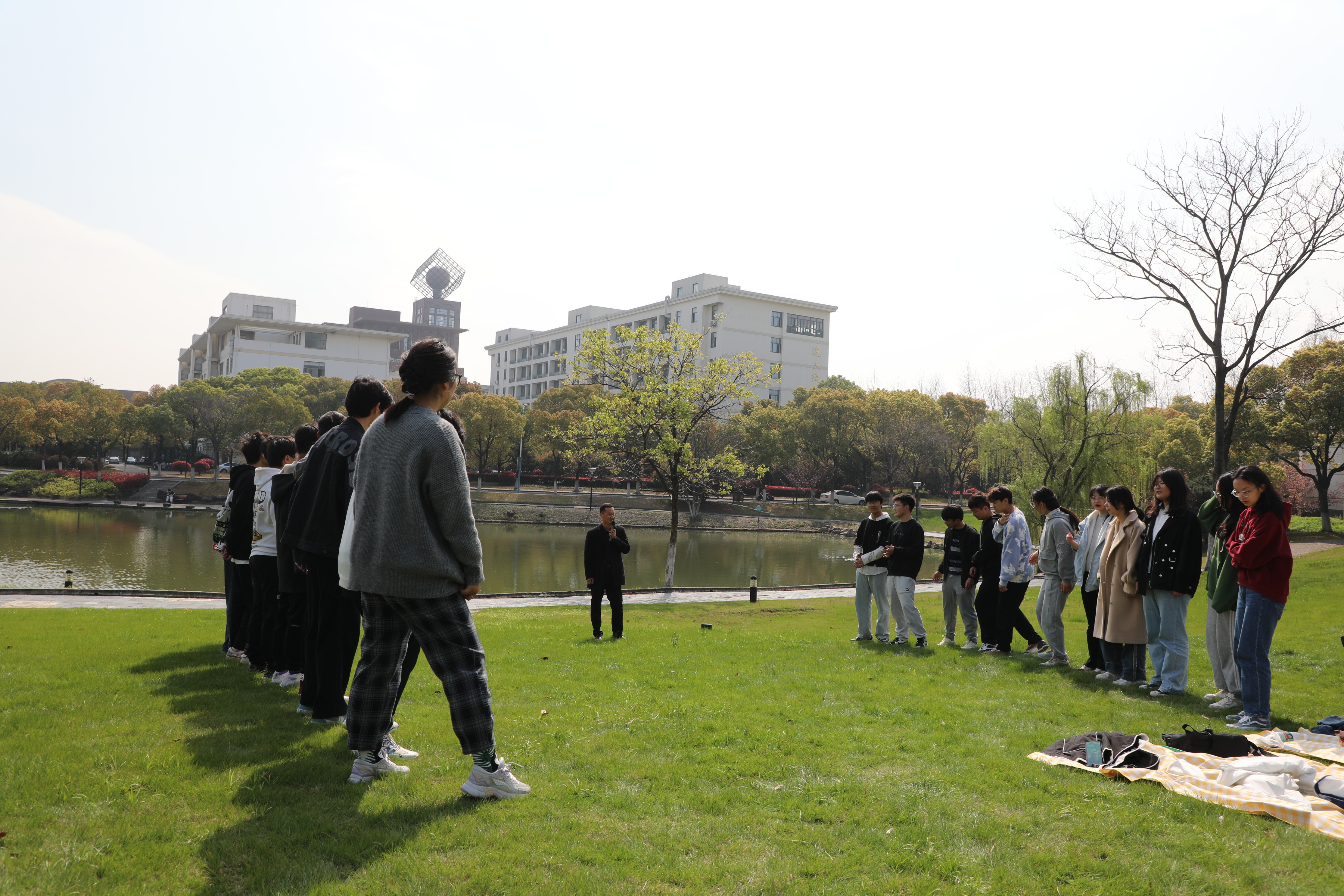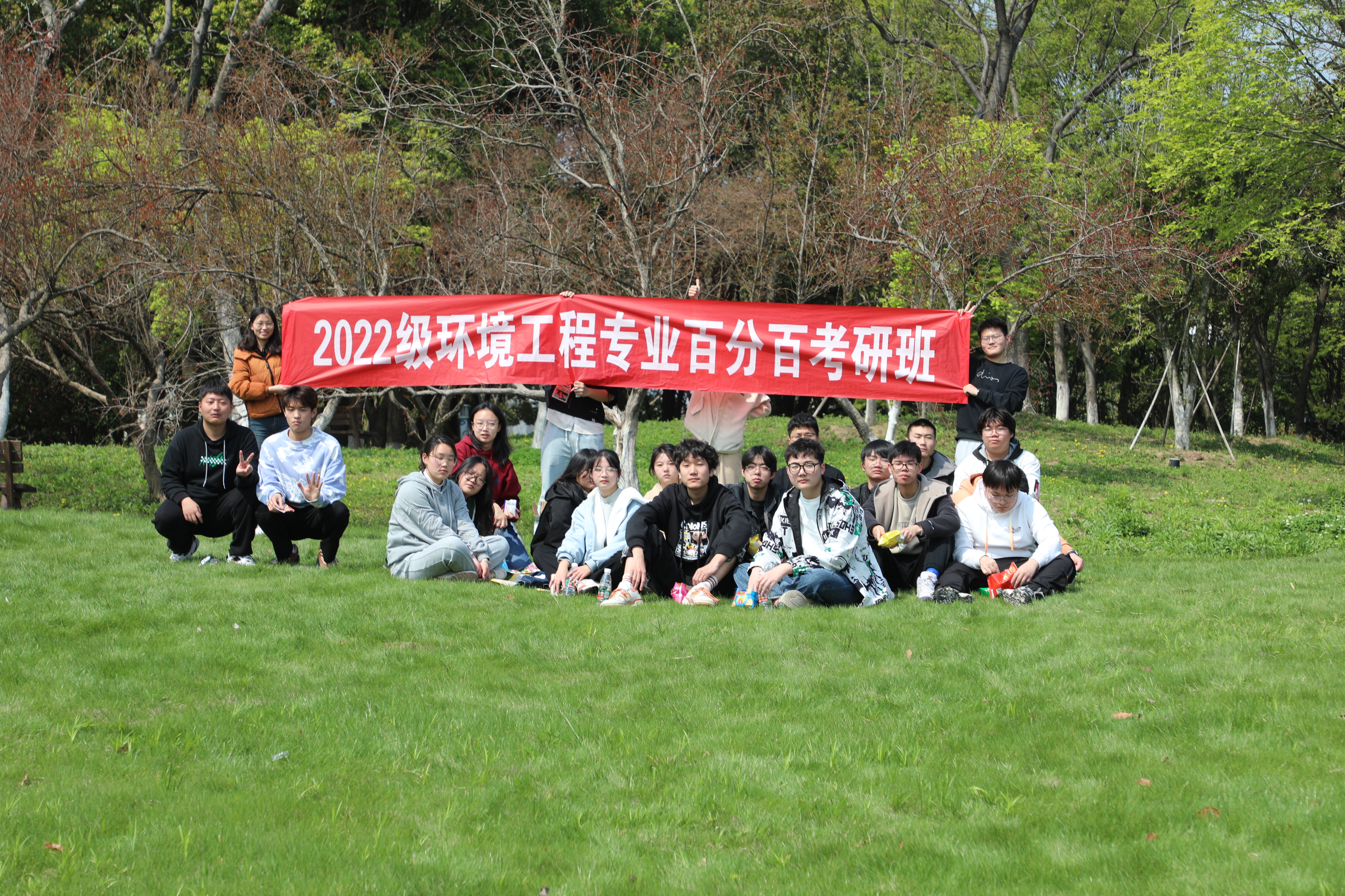一年之计在于春,春天是新的开始,新的希望。为创建班级良好氛围,增进同学情谊,增强班级凝聚力,培养团队精神和协作意识,4月1日上午9点,威尼斯欢乐娱人城1099环境工程百分百考研班全体同学在若愚湖边草坪举行了团建活动。学院副院长冯胜,党委副书记林凌敏和辅导员姚兰参加此次活动。