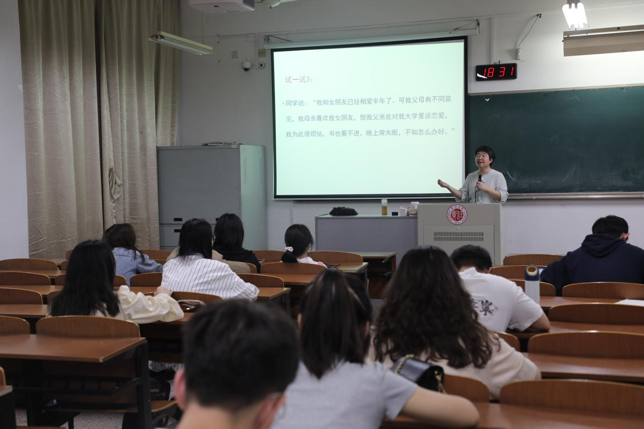 为进一步提高大学生的心理素质,促进大学生的身心健康和谐,宣传普及心理健康知识,深入开展心理健康教育,我院结合学院特点,突出专业优势,学院近期集中开展了丰富多彩的心理健康教育活动,4月18日晚邀请党委学工处心理咨询中心蔡亚敏举行了针对心理委员的大学生心理健康培训讲座。