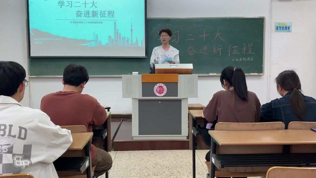 4月19日18时,环境学院组织优秀学生代表张茹楠、晁翔宇进行“学习宣传贯彻党的二十大精神”主题宣讲,环境学院全体新生聆听了此次宣讲。