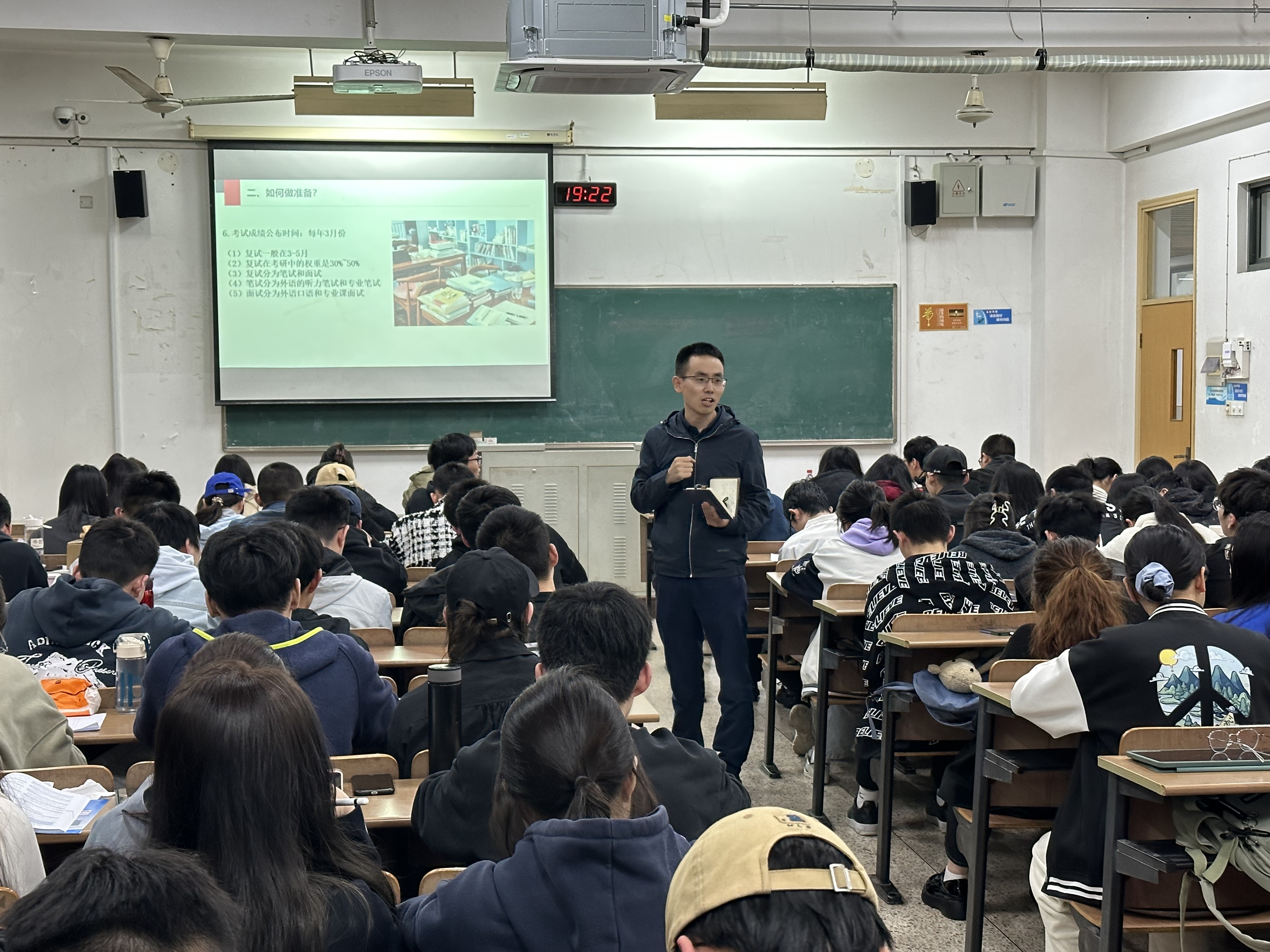 会议伊始,辅导员王国宇结合我院学科专业优势,通过从“为什么要考研”、“如何考研”以及“现阶段应该做什么”三个方面讲述多个生动案例进行考研动员。随后,环工201班主任肖娴通过讲述自身考研经历,建议同学们科学自我评估,综合考量时间与精力的性价比,合理选择目标院校。紧接着,资环202班主任牛东泽结合近年考研现状,强调本科生应努力提升个人综合素质,挖掘自身学术发展潜能;与此同时,资环201班主任刘鹏结合当下的就业形势、企业招聘情况分析了考研的重要性和必要性。会议最后,党委副书记林凌敏鼓励同学们要明确考研目标,坚定考研信心,脚踏实地,迎接挑战。